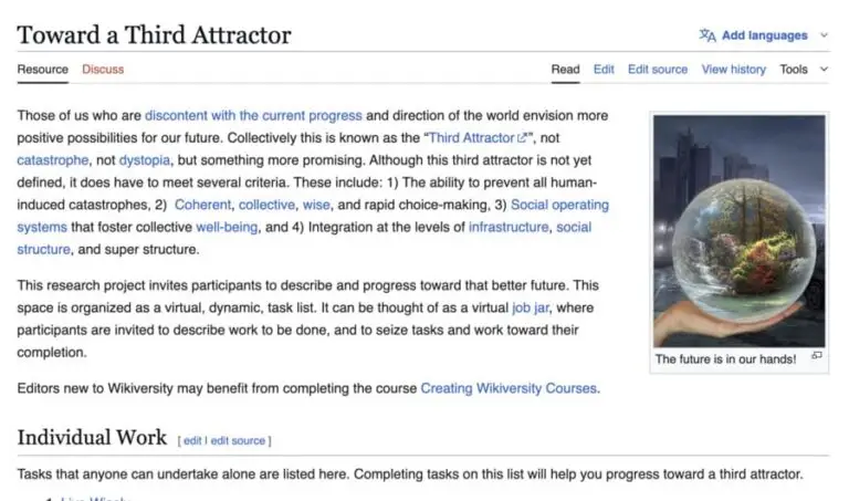 This Wikiversity page outlines a collaborative research agenda for a “Third Attractor” future—neither catastrophe nor dystopia—defined by wise collective decision-making, resilient governance, and integrated systems for societal well-being.